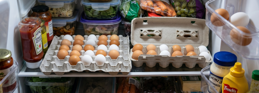 Posisi rak telur di pintu kulkas memang sengaja didesain oleh pabriknya, sehingga ini kelihatan paling pas buat menyimpan telur. Namun, ini justru kesalahan penempatan paling fatal. Mengutip pedoman keamanan pangan dari Food and Drug Administration (FDA), pintu kulkas adalah area dengan suhu paling nggak stabil karena terus-menerus terkena suhu ruang saat dibuka-tutup. Perubahan suhu yang drastis dan terus-menerus ini akan memicu kondensasi pada cangkang, sekaligus mempercepat kerusakan ikatan protein di dalamnya. Akibatnya, tekstur putih telur akan jadi sangat encer dalam waktu singkat. Jadi, cara paling aman menyimpan telur adalah di rak bagian dalam (tengah atau bawah) kulkas, di mana suhu dinginnya jauh lebih stabil.